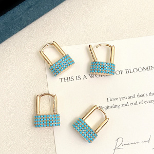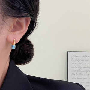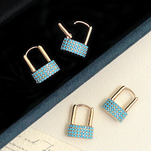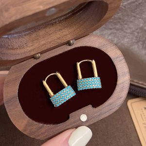 绿松色U型锁耳扣女铜镀真金法式设计感高级耳环小众轻奢气质耳饰