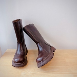 2025秋冬新款童鞋小女孩气质潮款公主靴韩版曲曲绒女童百搭高筒靴