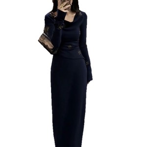 法式高级感轻奢时尚套女装设计感荡领烫钻长袖T恤高腰直筒半身裙
