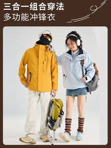 2025新款春秋户外三合一冲锋衣男女同款防风防水可拆卸情侣登山服