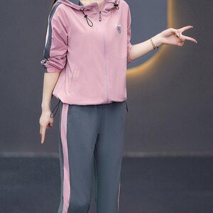 年轻妈妈运动套装2025早春新款印花跑步服中老年女春秋外套两件套