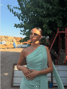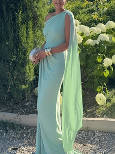 独立站亚马逊跨境欧美女装时尚斜肩褶皱飘带修身气质连衣裙女