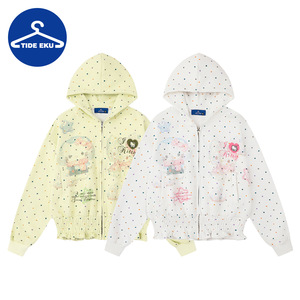 2025美式动漫卡通猫格子绑带连帽外套宽松长袖秋季新款女士卫衣