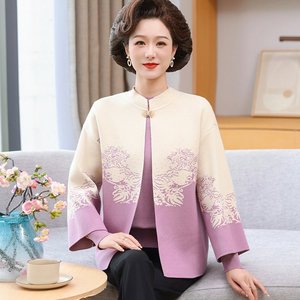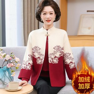 妈妈秋装新款针织开衫两件套装中老年女春秋冬季时尚国风毛衣外套