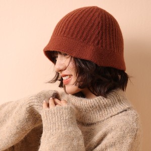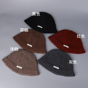纯羊毛针织渔夫帽女冬季保暖舒适小帽檐盆帽优雅韩版纯色帽子百搭
