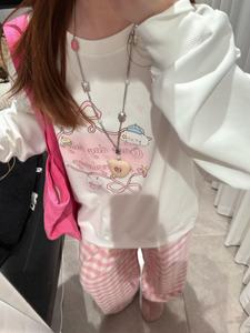 可爱风减龄白色卫衣女2025秋季新款宽松韩版慵懒风百搭套头上衣女