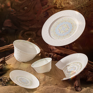 敦煌碗盘套装家用2025新款高温瓷碗具乔迁礼品景德镇骨瓷餐具套装