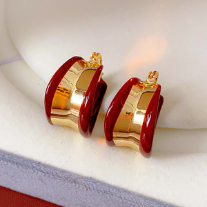 真金电镀滴油圆形耳扣耳环时尚简约个性耳钉小众高级感耳饰百搭女