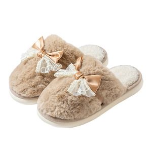 秋冬爆款蝴蝶结棉拖鞋女保暖防滑厚底居家日用时尚百搭加绒棉拖鞋