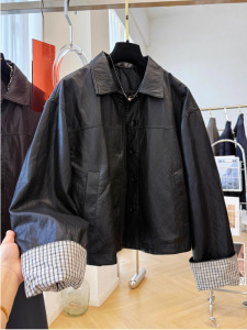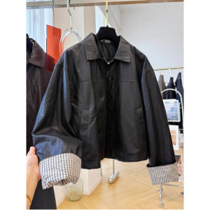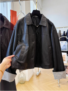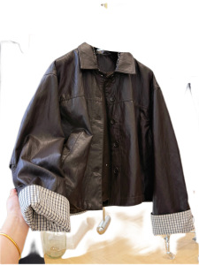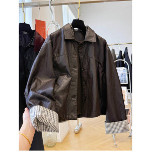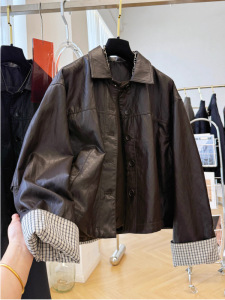 韩系pu皮衣外套女开衫2025秋季新款女装宽松格子夹克上衣女A7575