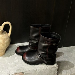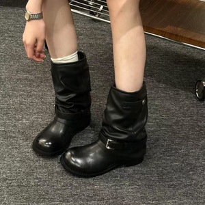女鞋乌鸦信笺芒果头褶皱裤管骑士靴堆堆短靴复古长靴2025新款