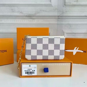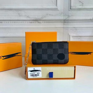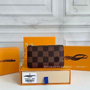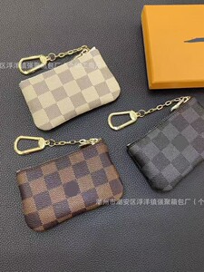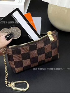 潮酷高级拉链挂扣简约时尚老花皮质轻奢钱包卡夹卡包零钱包钥匙包