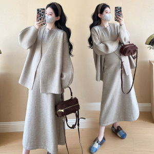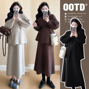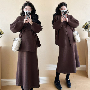 孕妇装毛衣套装2025孕妈秋冬灯笼袖外套减龄针织宽松冬装春秋开衫