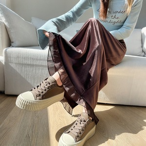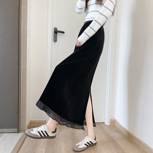 网纱花边丝绒开叉半身裙2025秋季时尚新款百搭显瘦直筒中长裙子女