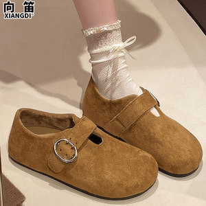牛皮版全包勃肯鞋加绒二棉鞋2025新款秋冬季新款玛丽珍鞋懒人单鞋