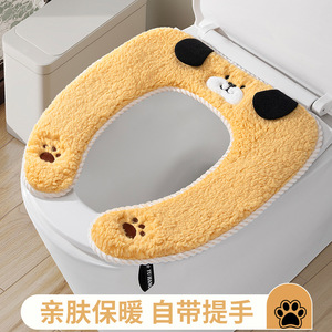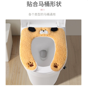 韩式黑耳狗卡通马桶垫加厚粘贴式通用马桶套防水坐便垫简约坐便套