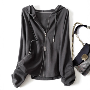 300斤大码女装卫衣秋薄款连帽长袖上衣胖m遮肉显瘦开衫拉链外套