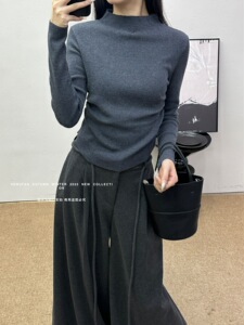 【WOW】收褶上衣针织衫女秋季新款韩版简约纯色小衫(含6%羊毛)