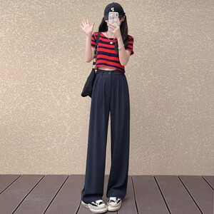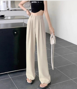 定制跨境垂感西装裤女夏季2025新款高腰显瘦宽窄休闲直筒冰丝阔腿