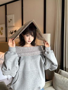 2025秋季新款韩版宽松慵懒风一字肩卫衣女设计感小众上衣