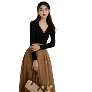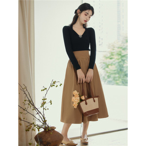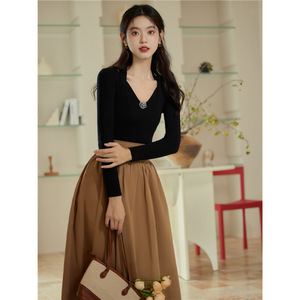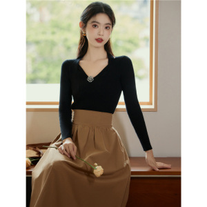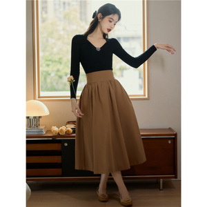温柔赫本风可盐可甜小套装高级感气质显瘦针织毛衣配半身裙两件套
