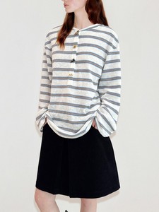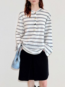 范洛Fano miu系牛角扣亨利衫复古慵懒条纹长袖宽松T恤女2025新款