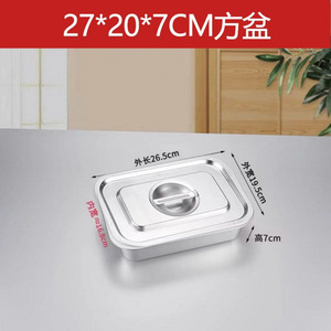 加厚304不锈钢长方盘方块加深托盘平底快餐蒸饭盘串串香方盆带盖