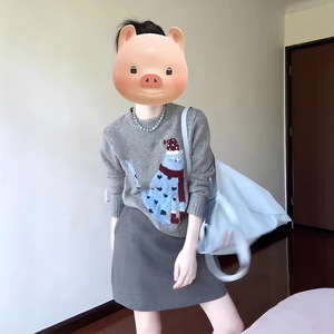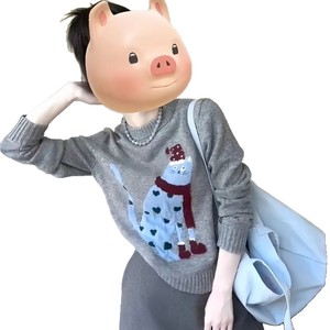 韩系慵懒风卡通猫咪提花毛衣女2025秋冬新款高级感套头针织衫上衣