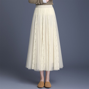 垂坠感百褶网纱大摆裙松紧腰休闲长裙2025年秋季新款时尚半身裙