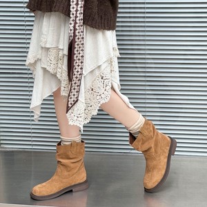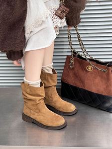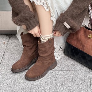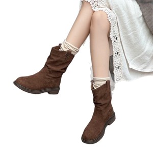 复古美拉德西部牛仔靴女2025年秋冬新款套筒平底短靴低跟中筒靴女