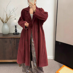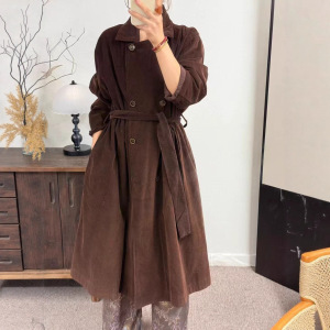 秋季韩版宽松时尚韩国绒双排扣翻领双层风衣外套百搭中长款上衣女