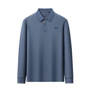 厂家直销100纯棉长袖polo衫男秋季新款商务休闲宽松印花翻领t恤男