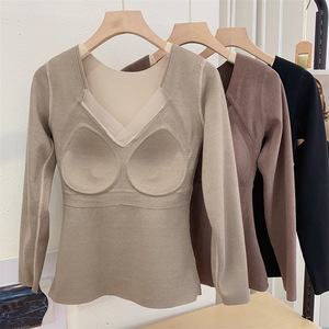 8805石墨烯保暖长袖女带胸垫一体式内搭外穿自发热打底保暖上衣女