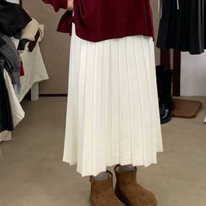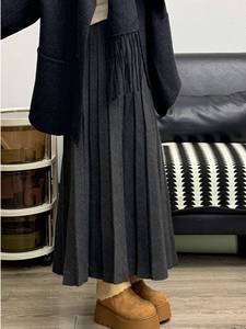 灰色中长款针织百褶裙女2025秋冬新款韩系百搭显瘦毛线半身裙子潮