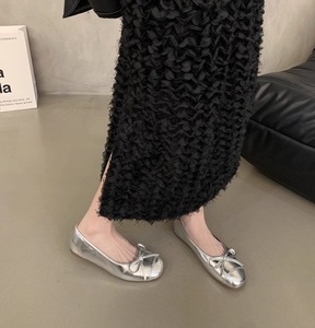 气质平底晚晚鞋法式小红色单鞋女鞋子2025春秋款软底银色芭蕾舞鞋