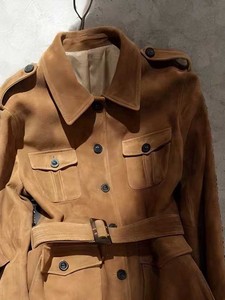 美拉德又a飒 复古麂皮绒棕色外套中长款气质高级感轻熟风休闲风衣