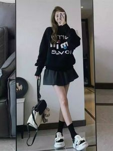 黑色美式复古字母印花休闲圆领卫衣外套女早秋宽松显瘦慵懒风上衣