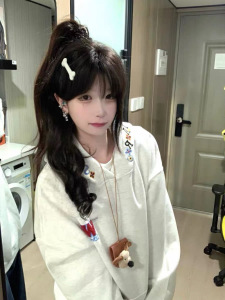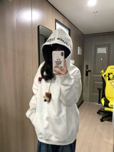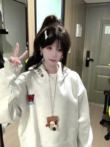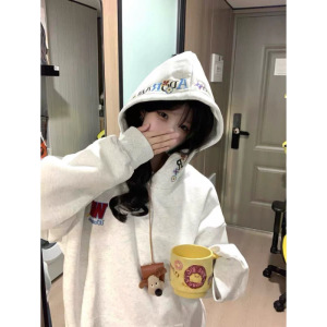 美式复古趣味刺绣字母卫衣女2025新款秋冬宽松学院风情侣连帽外套