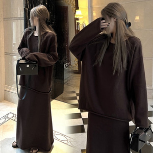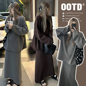 孕妇装秋装套装孕期法式穿搭2025新款慵懒卷边针织毛衣两件套秋冬