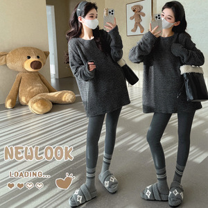 孕妇装秋冬加厚双面磨毛澳绒孕妇冬季条纹T恤上衣宽松遮臀打底衫