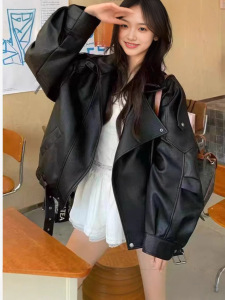 黑色皮衣外套女酷飒风小个子秋季2025超火外套今年流行皮衣高级感