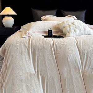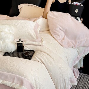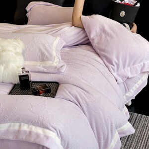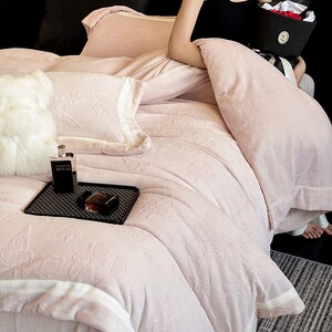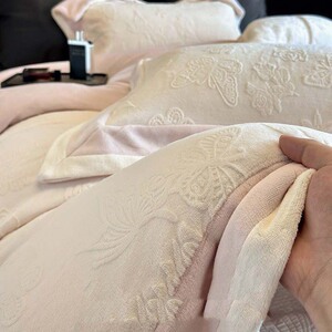 A类全消光雕花牛奶绒四件套加绒冬季被套感防静电双面绒套件