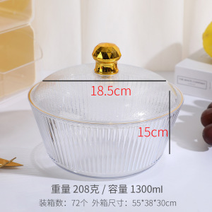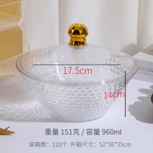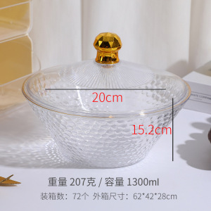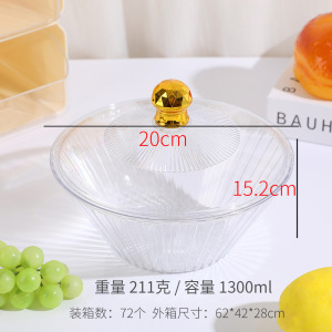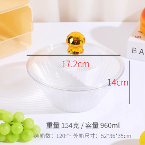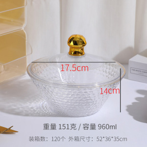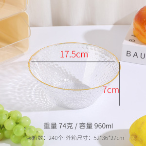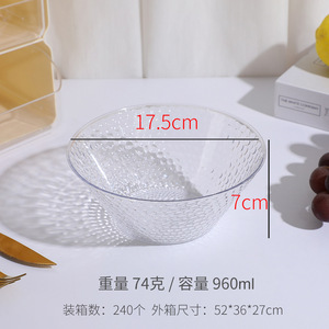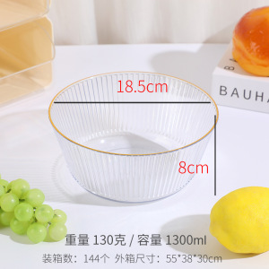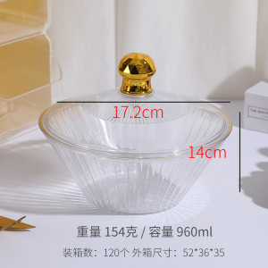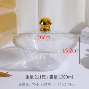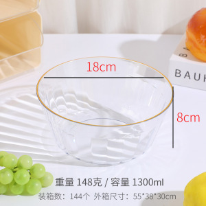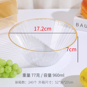 PET食品级塑料沙拉碗高颜值金边透明甜品碗泡面碗螺蛳粉碗水果盆