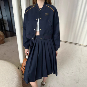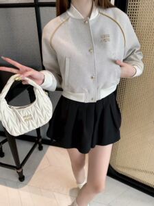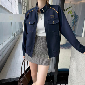 mm家25ss秋冬新款立领夹克外套字母贴布绣花装饰时尚短款+长款