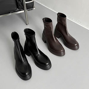 巨洋气!高跟短靴瘦瘦靴女2025年秋新款单靴厚底马丁靴子英伦简约