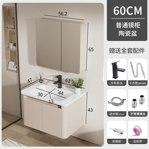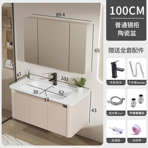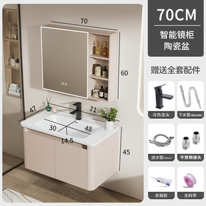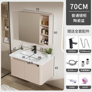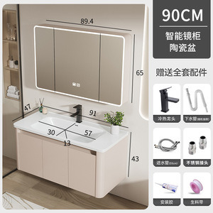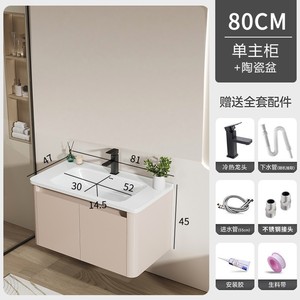 奶油风圆弧浴室柜卫生间陶瓷一体盆卫浴柜洗手台盆柜组合洗漱台盆