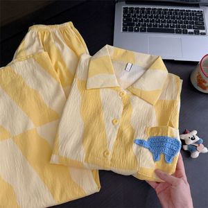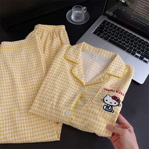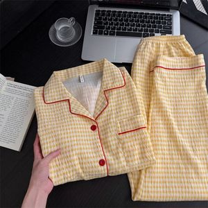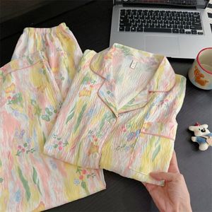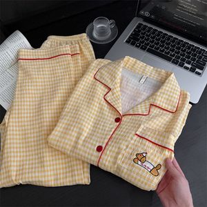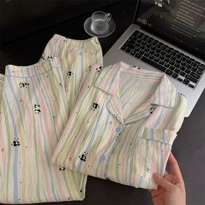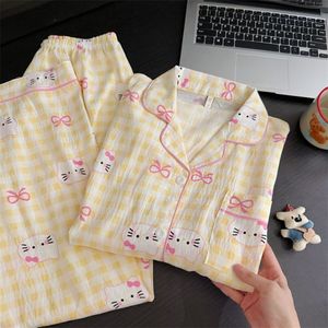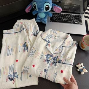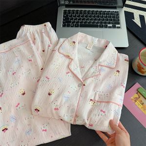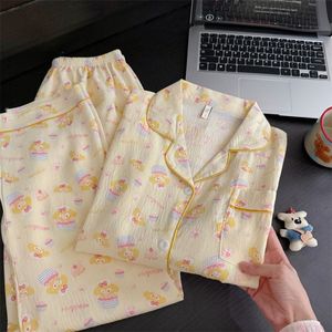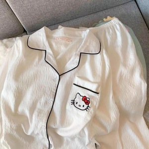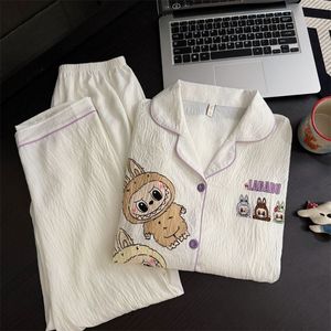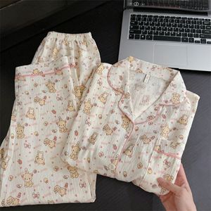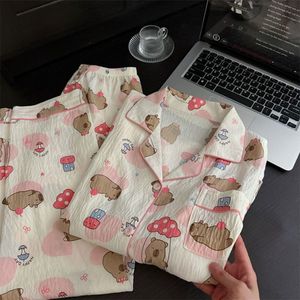 跨境批发春秋长袖长裤睡衣女云朵棉韩版卡通甜美网红开衫翻领套装
