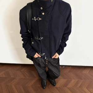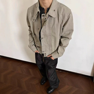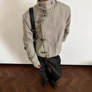 2025美式复古秋冬季纯色工装机车风夹克设计男女款短宽型休闲外套