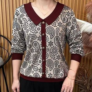 一件代发直播爆款2025春秋季新款印花长袖T恤女娃娃领打底衫上衣
