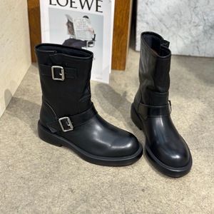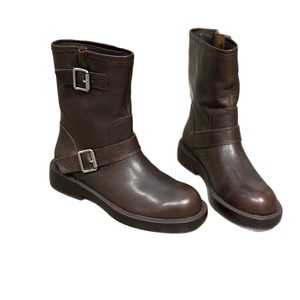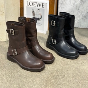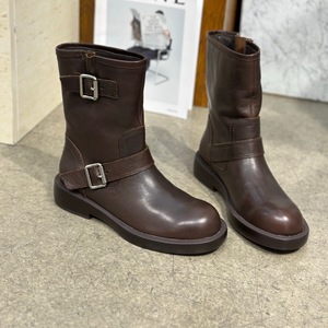 欧货真皮厚底复古骑士靴女2025秋冬新款中筒靴时尚百搭显瘦机车靴